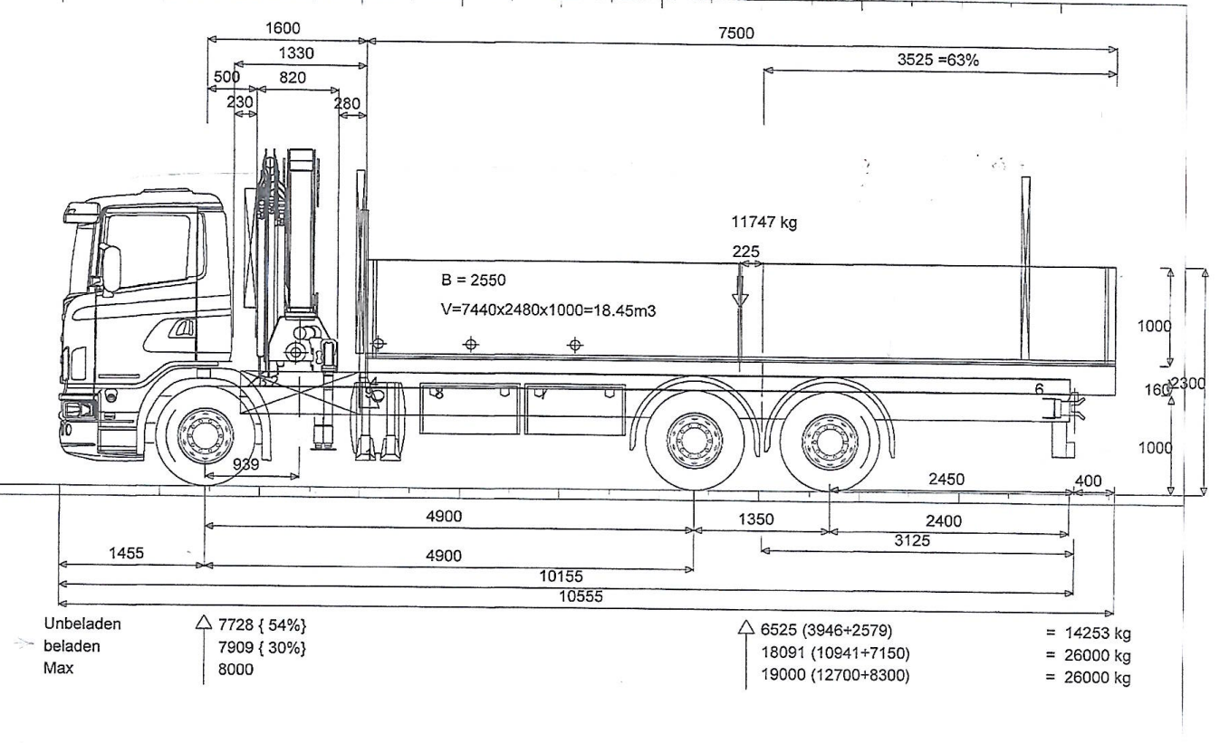 Gesamtgewicht: | 26.000 kg, Eigengewicht 13.350 kg, Nutzlast 12.650 kg |